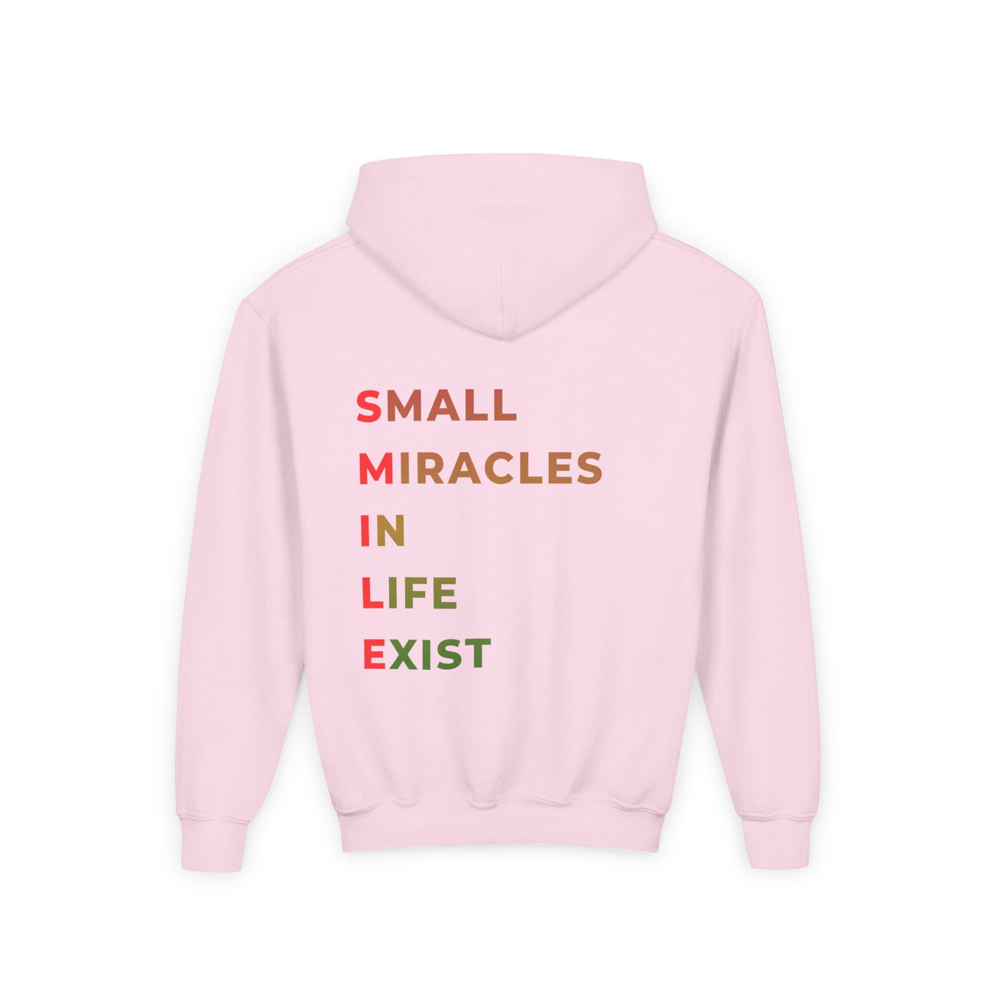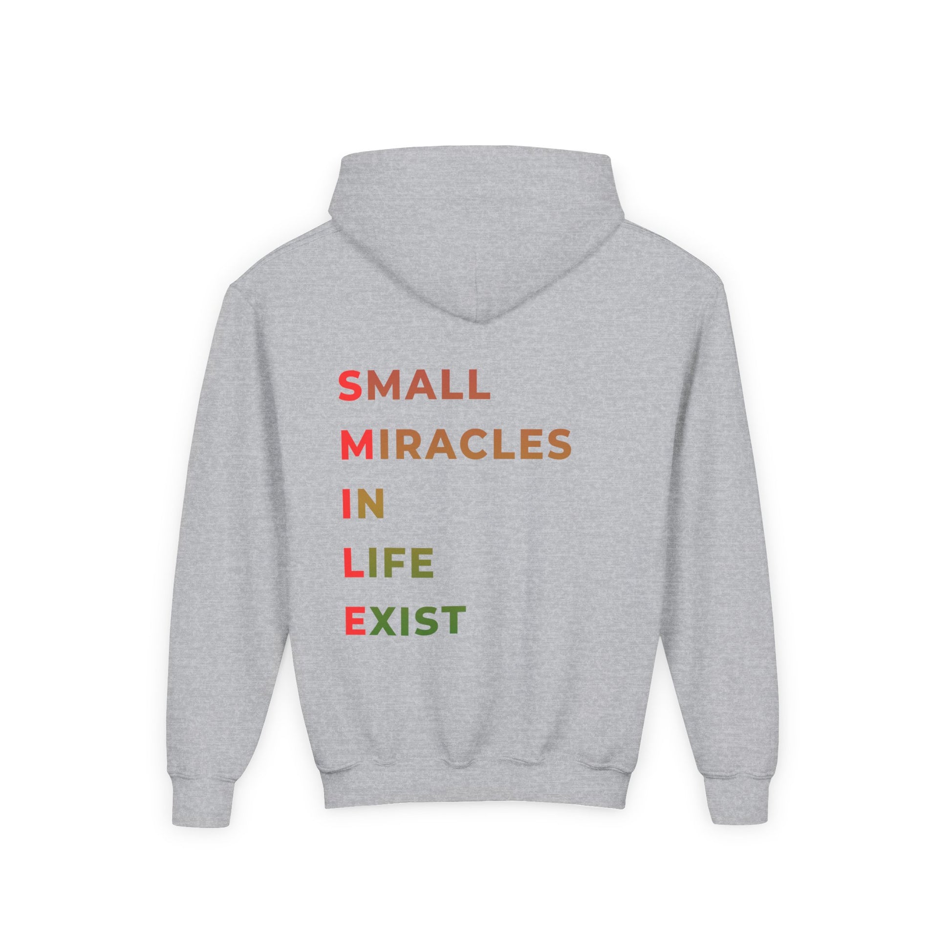 Youth Hoodie - 'Smile: Small Miracles In Life Exist' Positive Graphic Hoodie